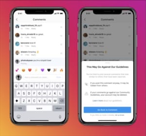 いじめに関連するコメントを投稿しようとすると、「この投稿はInstagramガイドラインに反する可能性があります」と表示されいじめコメントを繰り返すと、最悪アカウント削除されてしまう可能性もあります。