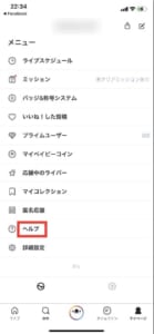 マイページに遷移するのでメニューのもっと見るをクリックしてヘルプを選択します。
