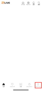問い合わせ手順としては21LIVEを起動してマイページをタップしてください。
