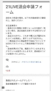 21LIVEでは、現在アプリやブラウザ経由で退会申請のフォームに行くことができないという点に注意してください。