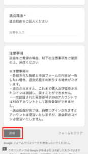 上記で確認した内容を退会申請フォームで入力し、退会申請を行ってください。