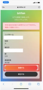bitfun idを登録するときに性別と誕生日は後から変更できない