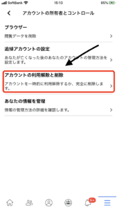 しかしながら、完全にアカウントを削除するよりは、一時的に距離を置きたいと思っている方にオススメなのが、利用解除(一時停止)がオススメです。