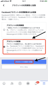 もし、完全にFacebookを辞めたいのであれば、利用解除ではなく、退会(削除)を選択して下さい。