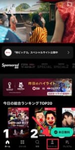 Abema TVのホーム画面の下部にあるマイページをタップします