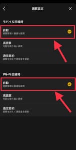 画像のようにモバイル回線時/Wi-Fi回線時のどちらも自動にチェックを入れます。
