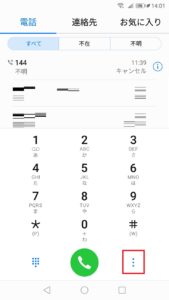 電話アプリを開き、右下にある「縦に3つの点」をタップします。