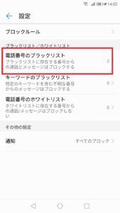 設定画面が表示されるので「電話番号のブラックリスト」をタップしてください。