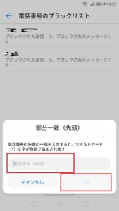 すると、部分一致だけで設定するように番号入力項目が表示されるので、入力後右下の「OK」をタップしましょう