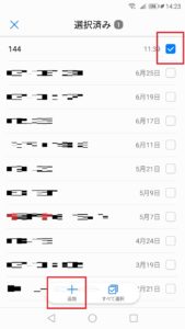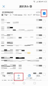 今までの通話履歴がずらっと表示されるので、着信拒否したい相手にチェックを入れていき、最後に下に表示されている「追加」をタップしましょう。
