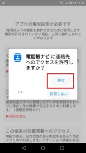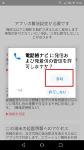 「電話帳ナビに端末上の写真・メディア・ファイル」これらのアクセスをしてもいいか聞かれるので「許可」を選びます。