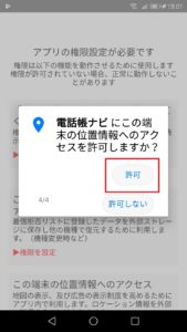 「電話帳ナビにこの端末の位置情報へのアクセス」をしてもいいか聞かれるので「許可」をタップします。