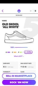 - MAX BOOST RATE:このスニーカーを履いてブーストがかかった状態で1000歩歩いたときに貰えるAglet(通貨)
