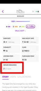 スニーカーごとにリペア回数が設定されているので、スニーカーの詳細から確認しましょう。