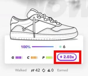 なお、貰える通貨のブーストが増えているのか確認したい場合は、スニーカー詳細のGCP右側のブースト部分を確認してみましょう。