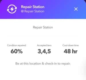 「Repair Station」では耐久値を最大まで増やすことが出来ずにリペア回数を無駄にしてしまう可能性があります。(例:耐久値が30%で60%回復しても90%なので最大値にならない)