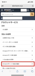 アカウントサービスのページが表示されるので、Amazonポイント残高の確認をタップしてください。