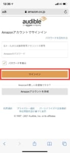 Amazonアカウントのログインページが表示されるので、必要項目を記載してサインインをタップしてください。
