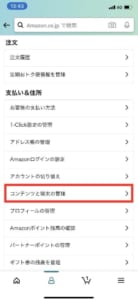 アカウントに関連する項目が表示されるので、コンテンツと端末の管理をタップします。