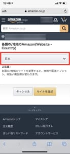 ブラウザ版のAmazonから居住国を変更する場合には、左上の横三本線をタップしてください。