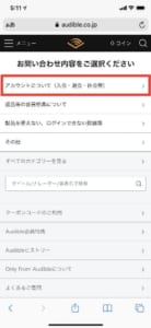 問い合わせを行いたい内容の項目が表示されるので、アカウントについて(入会・退会・休会等)をタップしてください。