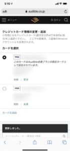 「このカードはAudible会員プランの規定カードとして設定されています。」と表示されれば紐付けの完了です。