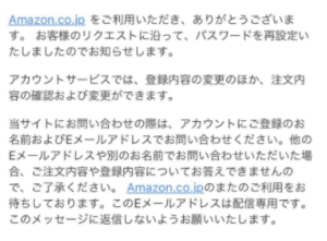 このメッセージが届いたときは、これから乗っ取り・不正アクセスの危険性があるとAmazon側が判断しているということでもあるため、早急にパスワード変更などの対処を行ってください。