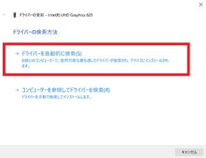 グラフィックドライバを右クリックで選択したらドライバの更新を選択しドライバーを自動的に検索をクリックすることで自動的に更新されます。