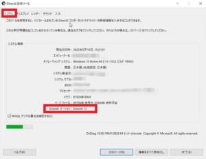もし、「DirectX バージョン」が古いものであったら、DirectXエンドユーザーランタイムWebインストーラをダウンロードします。