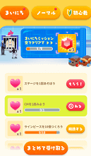 「まいにち」更新されるミッションは、ハートの回復が多いため、CM動画の視聴や簡単なミッションのクリアで効率良くプレイ出来るようになります。