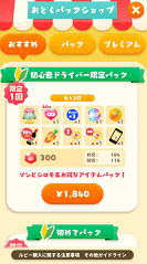 ルビーを使えばスタミナの回復やモルカ・インテリアを入手出来るガチャなどが引け、この他にもプレミアムパス(490円)や初心者ドライバー限定パック(1,840円)などお得な課金プランが存在します。