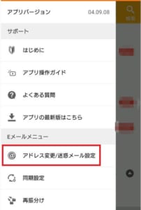 「アドレスを変更/迷惑メール設定」をタップ。