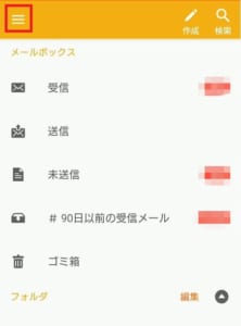 まずはメールアプリを立ち上げ、メニューをタップしてください。