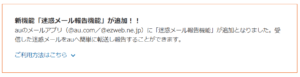 メールアプリに追加された「迷惑メール報告機能」は、受信した迷惑メールをauへ転送し報告できます。