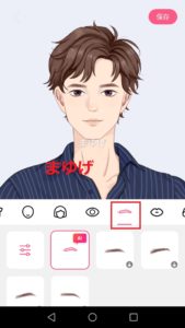 「目の形」変更の横には「眉毛の形」などを変更するボタンがあります。