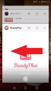 そうすると起動中のアプリが表示されるのでそこから「BeautyPlus」を選びスライドさせましょう。