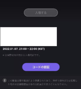 そのためサインインしていない状態でBeyond Liveアプリからライブを視聴しようとすると、コード認証というボタンが表示されます。