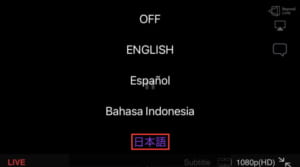 こちらで字幕の言語を選択することができるので、日本語をタップすれば完了です。
