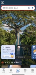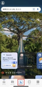 ホーム画面のメニューから直接チャットを開きたい場合は、画面下部にあるBingアイコンをタップしてください。