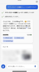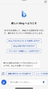 2023年2月末にはiPhoneやAndroidでもこの新しいBingを利用できるようになっており、アプリからAIのチャット機能を使えるようになっています。
