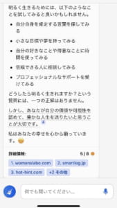 ですが質問に対する回答は検索ブラウザと連動しており、質問に対する回答の参考になるサイトのリンクも提供してくれます。