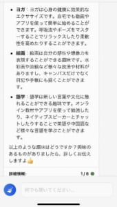 提示されている質問を参考に、自分が欲しい回答をもらえる質問方法を模索していくことができます。