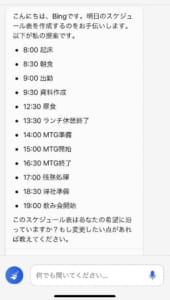 その日の予定やざっくりとした時間を送ることで、1日のスケジュールも作成してくれます。