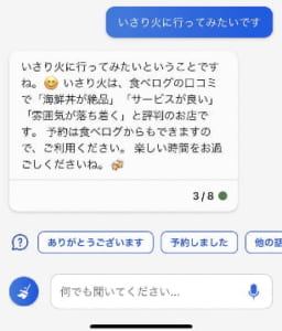 お店選びの際に面倒な情報収集に関しても、質問をすることで候補のお店をピックアップをしてくれます。