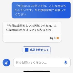 今回の例では台詞を指定して「お嬢様言葉に変換してください」と質問しました。