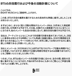 ですが、BTSは今や世界的スターです。すぐに解散するということにはならないでしょう。HYBE側も稼ぎ頭のBTSを解散させたくないと思います。