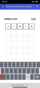 BTS wordleにアクセスしたら、画面の下部に用意されているキーボードから、BTSに関連するワードを入力します。