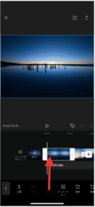 「CapCut」ではデフォルトの表示秒数設定が3秒となっていますが、今回1枚目の画像を2秒で設定したいので、1枚目の表示秒数を変更します。