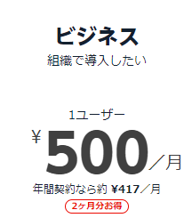 最小ユーザー数5ユーザーから利用可能な、企業向けのビジネスプランです。