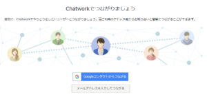 「Googleコンタクトからつながる」「メールアドレスを入力してつながる」を選択すると、チャットワークで繋がりたい人に知らせることができます。